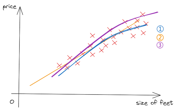 Simple model($f_{\overrightarrow{w},b}\left( x \right) =w_1x+b$) will get high bias VS complex model($f_{\overrightarrow{w},b}\left( x \right) =w_1x+w_2x^2+w_3x^3+w_4x^4+b$) will get high variance.