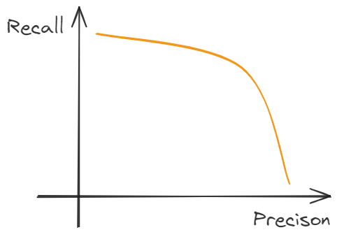 the trade-off between Precision(P) and Recall(R) has shown in the figure: