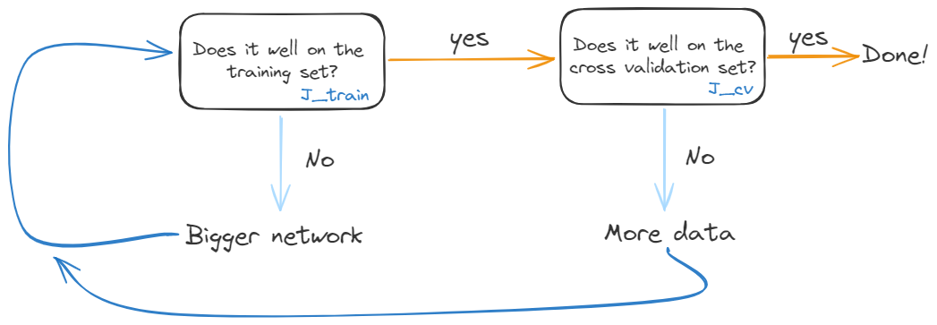$J_{train}$ reflects bias, and $J_{cv}$ reflects variance. A perfect model has low $J_{train}$ and low $J_{cv}$.