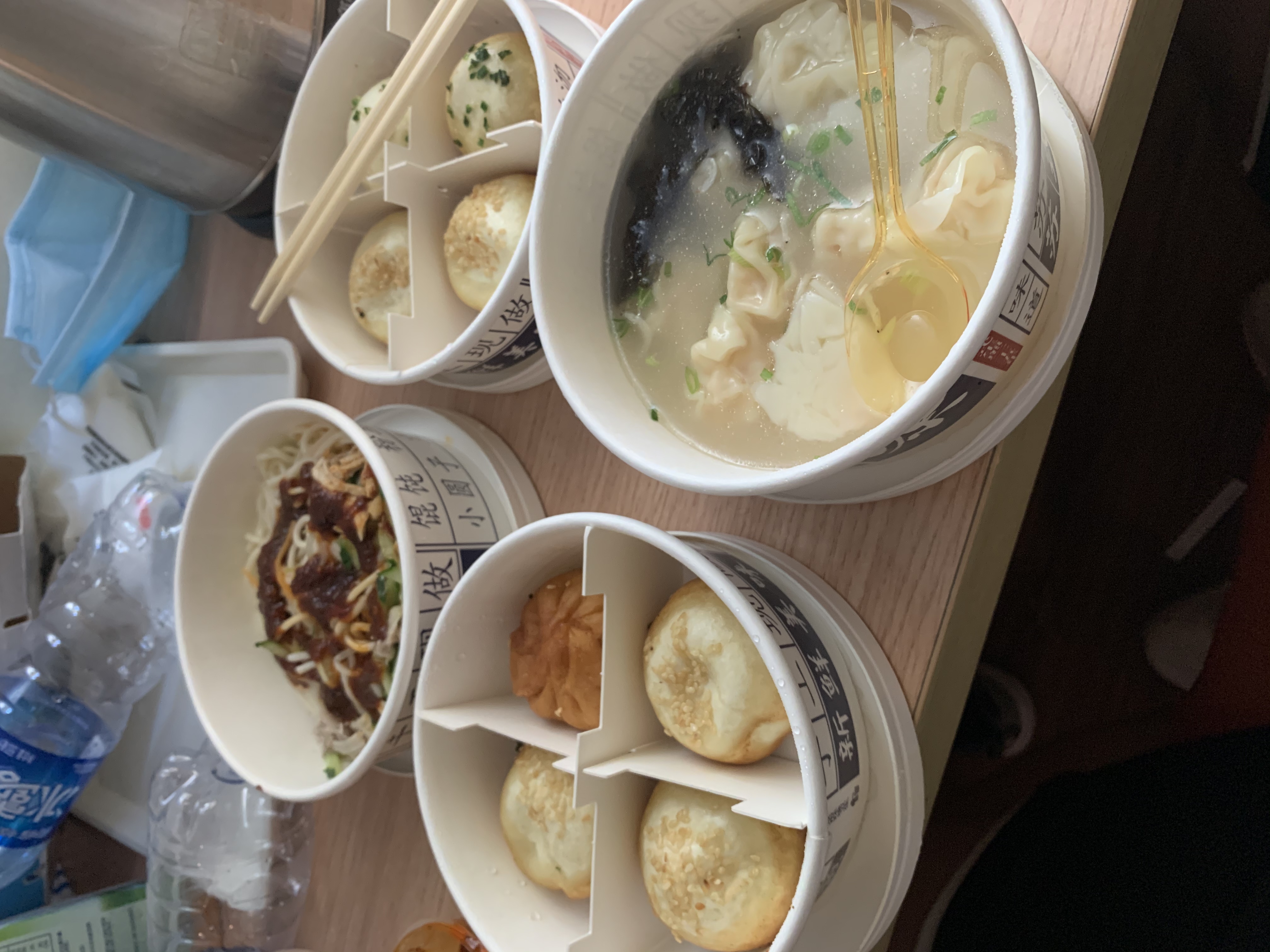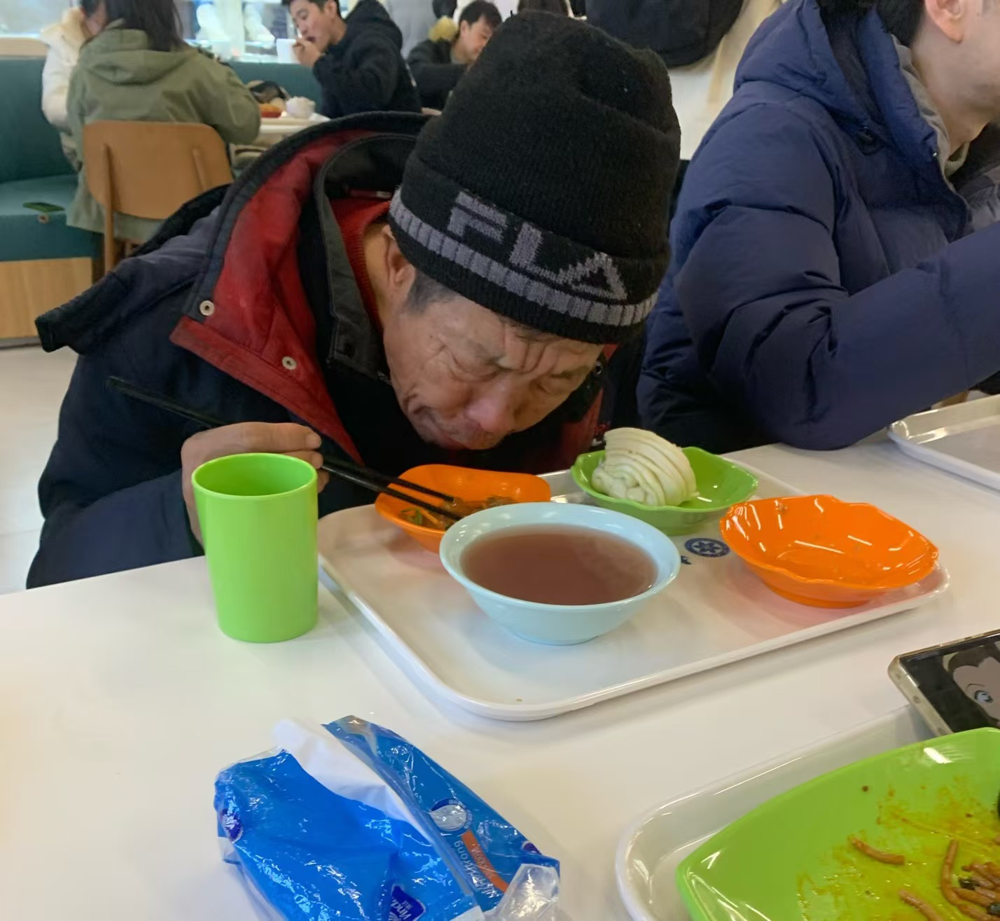 对面的叔叔买了俩馒头和一份一块钱的凉菜,叔叔人很善良,旁边的位置有点脏,每当有人坐那里他都提醒一下。